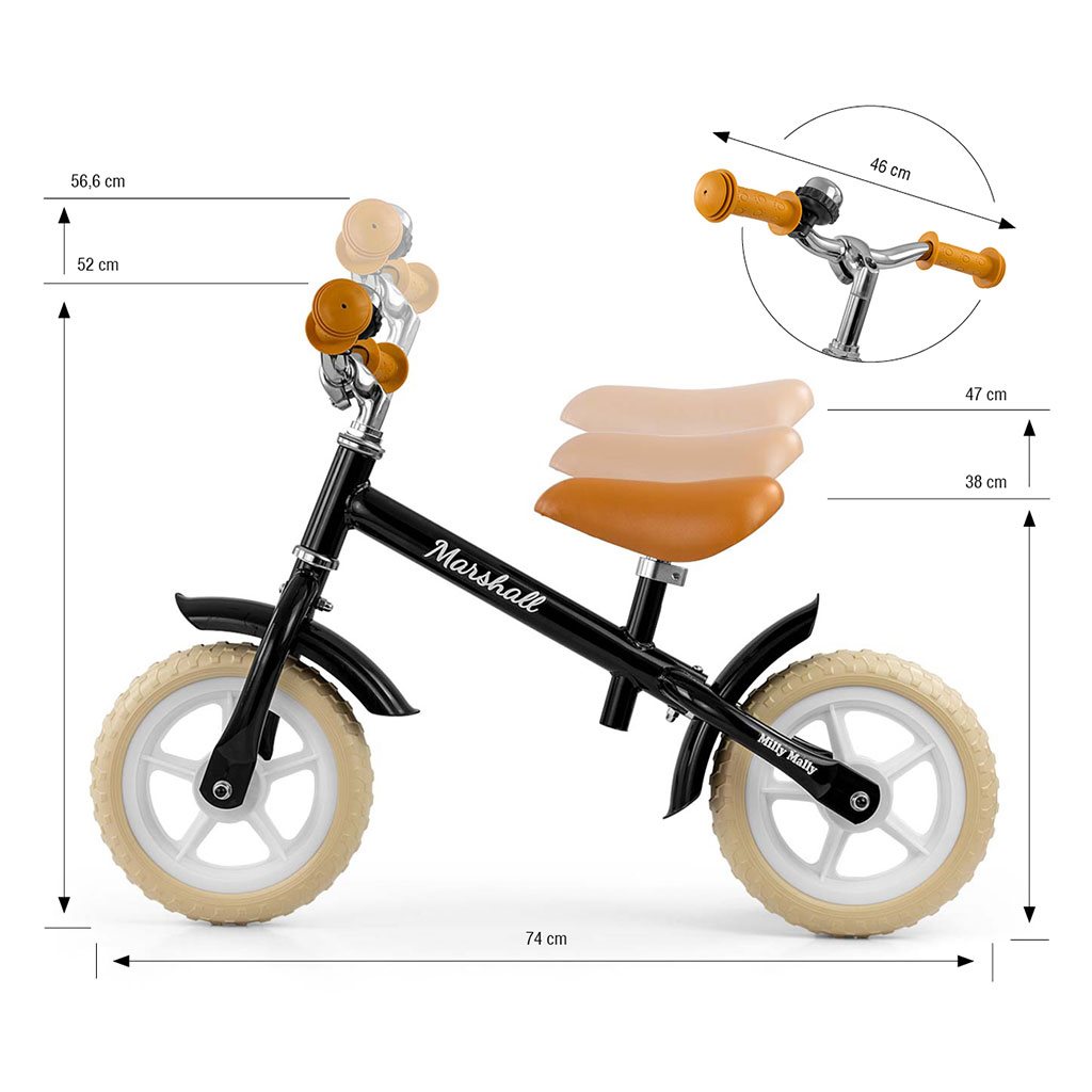 - nastavljiva višina krmila 52-56,6 cm, širina krmila 46 cm