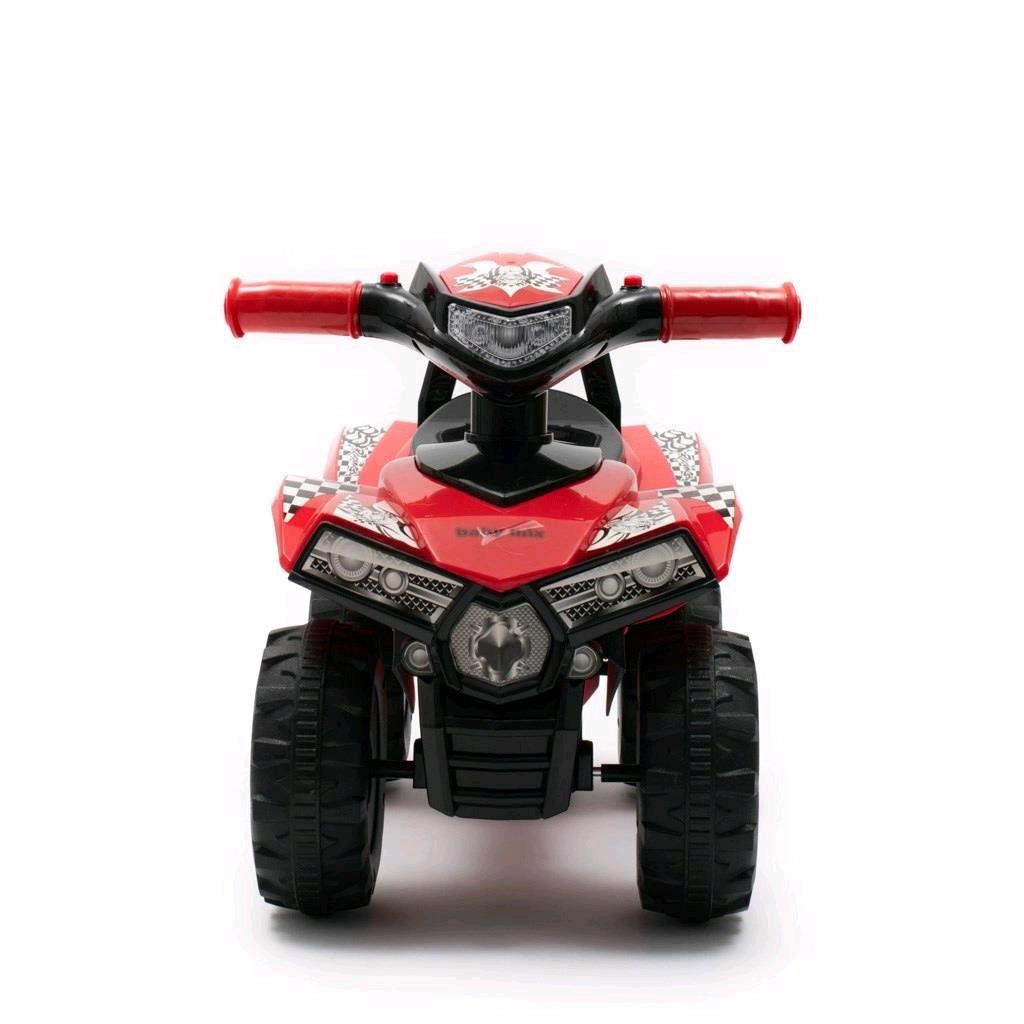 Odlična štirikolesnica Baby Mix z tremi melodijami, automatskim zvoncem in utripajočimi lučkami na krmilu. Štirikolesnica ima veselo barvo in je izdelana iz kakovostnega in trpežnega plastičnega materiala. Odraslek pomaga razvijati motorične sposobnosti otroka in zagotavlja mu veliko zabave in veselja. Primerna je tako za najmlajše otroke, ki že znajo sedeti, kot tudi za otroke, ki so se že naučili hoditi. Z štirikolesnico bo vaše dete uživalo v veliko zabave in veselja. Naša super štirikolesnica izgleda odlično, ima udoben širok sedež, široka krmila in velika plastična kolesa. Na krmilu ima atraktiven zvonec in gumb s tremi shranjenimi melodijami. Baterije niso vključene (2x AA 1.5V). Barve nalepk se lahko razlikujejo glede na trenutno ponudbo.