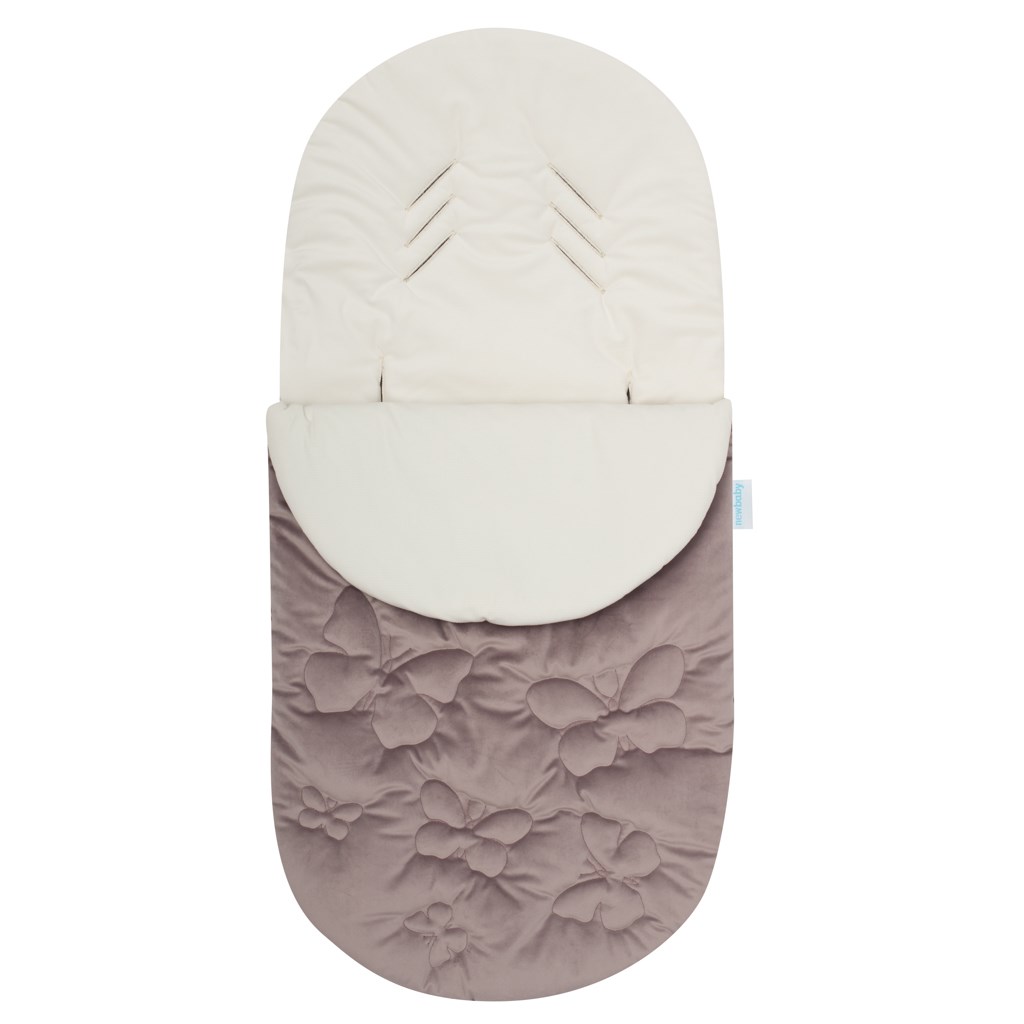 Otroški zimski spalni vreča češke znamke New Baby Butterfly, ki je idealna za voziček in avtosedež. Otroški spalni vreča ima odprtine za 5-točkovne varnostne pasove, kar zagotavlja maksimalno varnost med potovanjem. Spalni vreča na zadrgo zagotavlja udobno namestitev dojenčka v vreči. Zadrgo je mogoče odpreti tudi po celotni spodnji strani, kar omogoča uporabo vreče kot podloge. Notranjost vreče sestavlja mehka in prijetna gladka velvet plast. Zunanja stran je prijetna na dotik iz semiša z metuljčki.