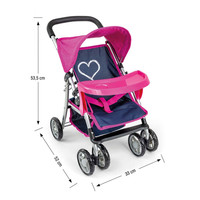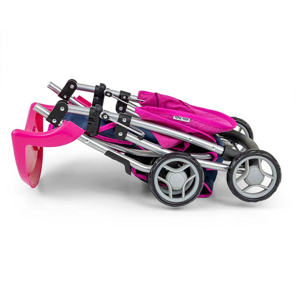 Voziček za punčko Kate blagovne znamke Milly Mally je izdelan iz kakovostnih materialov. Funkcija in oblikovanje vozička za punčke spominjata na pravi voziček. Kate je voziček za punčke dolžine 50 cm. Opremljen je s zložljivo streho, hranilno košaro, pasovi in vrtljivimi sprednjimi kolesi.