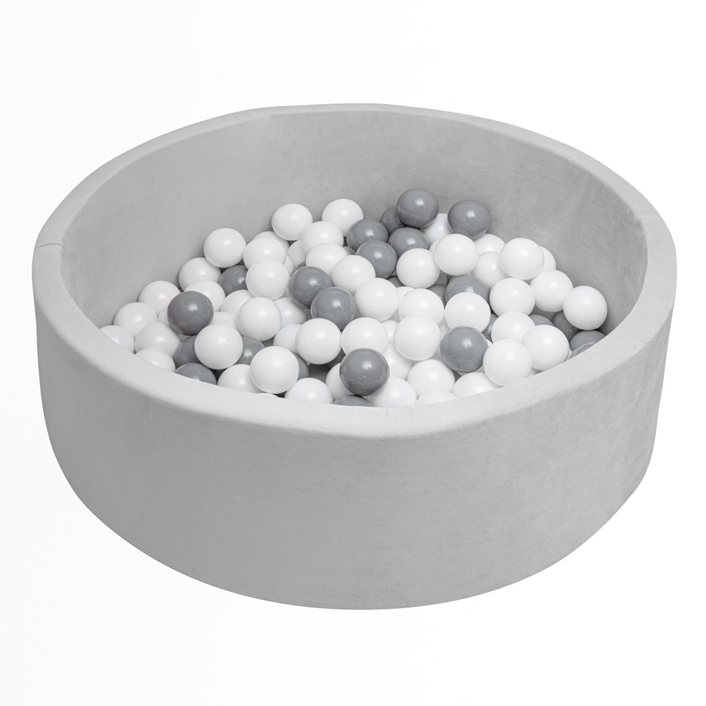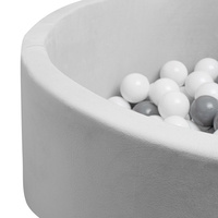Otroški suhi bazen z žogicami New Baby. Bazen, poln kroglic, je čudovita zabava, ki jo obožuje vsako otrok in mu nudi obilo veselja in radosti. Hkrati podpira čutni razvoj otroka in je poučen. Elastična pena bazena zagotavlja varnost in udobje. Ustreza tako modernemu kot klasičnemu interierju, otroški sobi in dnevni sobi. V paketu z bazenom so tudi žogice. V enem paketu je 150 kosov plastičnih certifikatih žogic v beli in sivi barvi. Izpolnjujejo varnostne norme za otroke, kot so EN-74 ali CPSC.