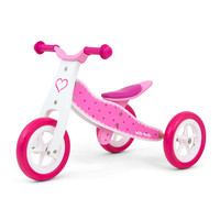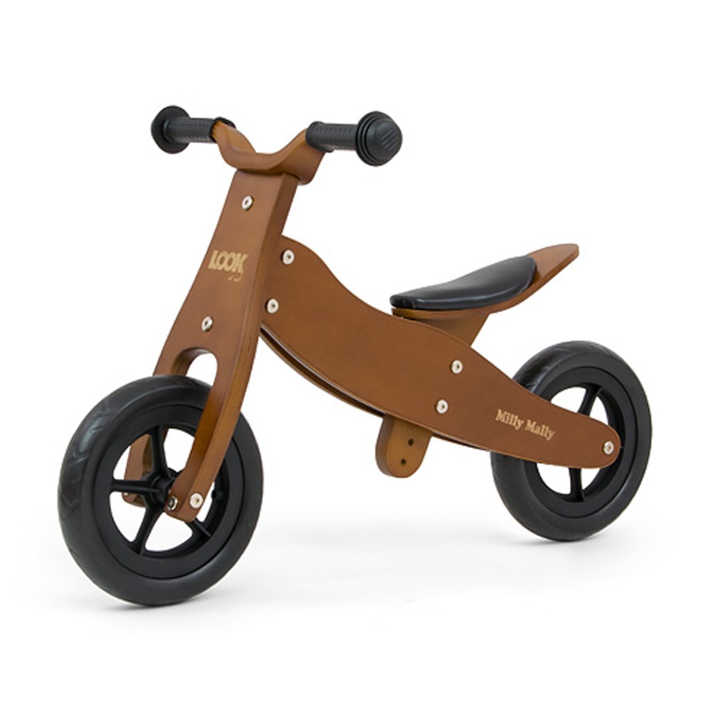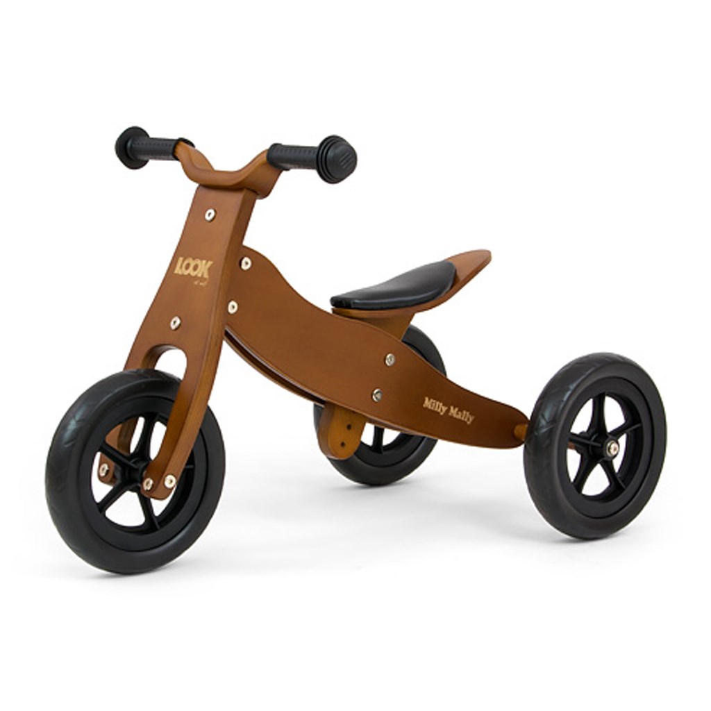 Otroški multifunkcionalni lesen skiro Milly Mally Look 2v1 je idealna rešitev za otroke, ki se prav začinjajo učiti vožnje s kolesom in še ne zmorejo ohranjati ravnotežja na dveh kolesih. Glavna prednost skiroja Look je, da ga lahko hitro in enostavno spremenite iz tricikla v dvo-kolesni skiro. Narejen je iz trdnega lesa in okrašen s čudovitimi veselimi barvami ter slikami. Peneča kolesa zagotavljajo udobje med vožnjo in ne utrudijo vašega malega dirkača. Dovolj široka razdalja med kolesi zagotavlja izjemno stabilnost, varnost in udobje doma in na prostem. Mehke in nedrseče ročice zagotavljajo trden oprijem krmila. Nastavljiva višina sedeža omogoča prilagoditev skiroja potrebam otroka. Čudovit multifunkcionalni skiro bo padel v oko tako deklicam kot dečkom in jih odlično pripravil za vožnjo s kolesom brez potrebe po namestitvi stranskih koles.