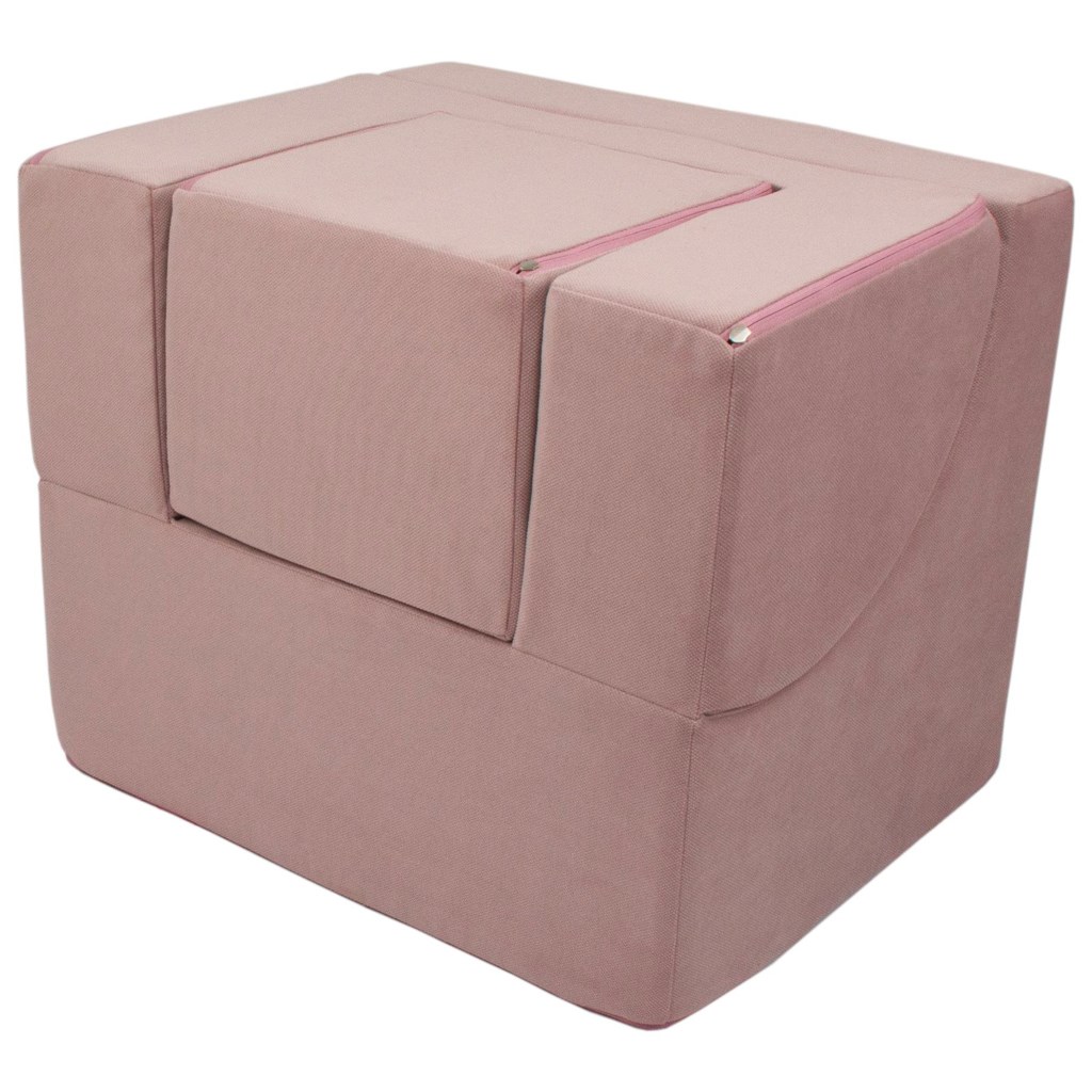 Sedež se zelo hitro spremeni v priljubljeno mesto vašega otroka za počitek ali igro. In zaradi svojega vsestranskega in elegantnega sloga se enostavno prilega v notranjost vsake sobe. Sestavljen je iz dveh delov. Iz kvadra in fotelja, ki ima zložljivo naslonjalo za roke. Po zloženiu naslonjala za roke, je le še potrebno dodati kvader v sredino in iz fotelja nastane sedež-lenivec.