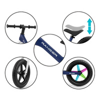 Trajno in izdelano z najsodobnejšo tehnologijo iz pena EVA. 12" kolesa, ki se ne prebijajo in jih ni treba napihovati, so brez vzdrževanja. Ergonomski sedež, ki ga je mogoče nastaviti po višini z mehkimi blazinami, zagotavlja udobje otroka in raste skupaj z njim. Kolo Ranger Flash ima ležajska krmila in ležajska kolesa. Protiskluzni ročaji iz mehkega gumija zagotavljajo varen oprijem in udobno manipulacijo.