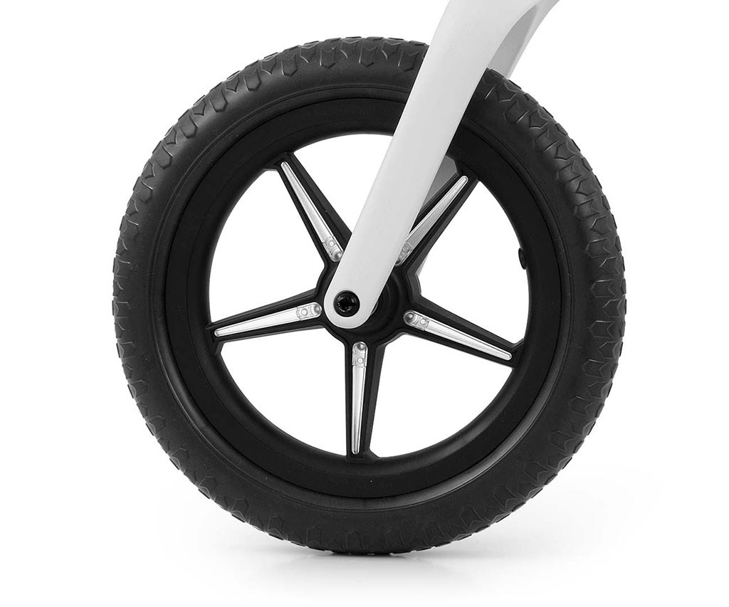 Ergonomska zasnova kolesa zagotavlja vzdržljivost in udobje. Trdna in izjemno lahka kompozitna konstrukcija kolesa. Kolo je primerno za dolgotrajno uporabo z najmlajšimi in enostavno prenašanje zaradi nizke teže.