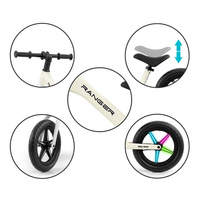 Trajno in izdelano z najsodobnejšo tehnologijo iz pena EVA. 12" kolesa, ki se ne prebijajo in jih ni treba napihovati, so brez vzdrževanja. Ergonomski sedež, ki ga je mogoče nastaviti po višini z mehkimi blazinami, zagotavlja udobje otroka in raste skupaj z njim. Kolo Ranger Flash ima ležajska krmila in ležajska kolesa. Protiskluzni ročaji iz mehkega gumija zagotavljajo varen oprijem in udobno manipulacijo.