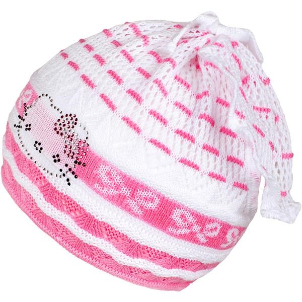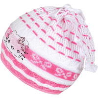 Pomladna pletena kapica-šal New Baby. Kapico krasi slika muce z bleščečimi kamenčki. Kapica je narejena iz zračnega materiala, zato je primerna za pomladne in jesenske dni. Idealna za majhne in večje deklice. Sestava: 100% bombaž. Material je elastičen. Obseg okoli glavice približno 40-50 cm.