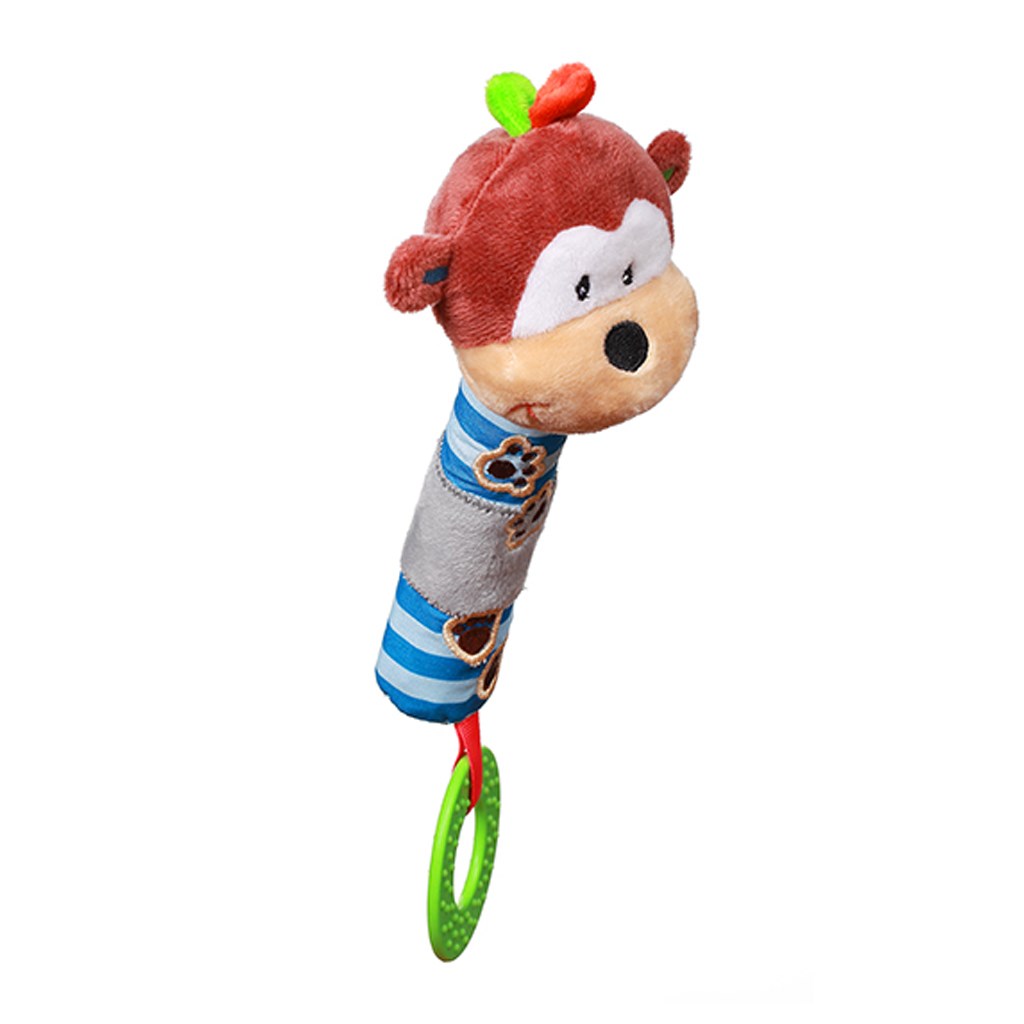 Lepa barvita igrača za dojenčke Baby Ono. Igrača s piščalko razvija vidno, slušno in gibalno koordinacijo dojenčka. Oblika igrače omogoča vadbo oprijema in premikanja iz roke v roko. Grizalo zmanjša bolečino razdraženih dlesni pri rasti zobkov. Igrača je izdelana iz kvalitetnega in prijetnega materiala. Višina cca 28 cm. Primerna za otroke od 6 mesecev dalje.