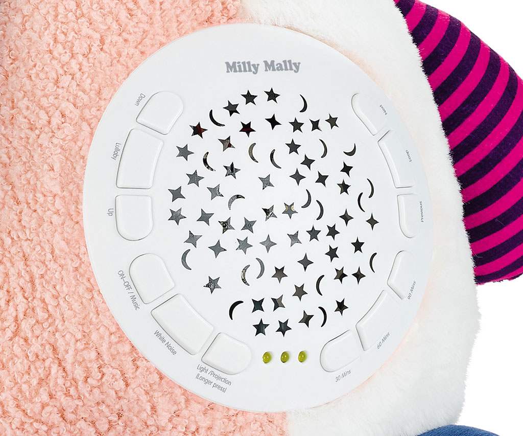 Vaš malček se bo ob pogledu na prijetno plišasto igračo počutil varno in udobno, pomirjujoče melodije in zvoki pa mu bodo pomagali, da se umiri in zaspi.