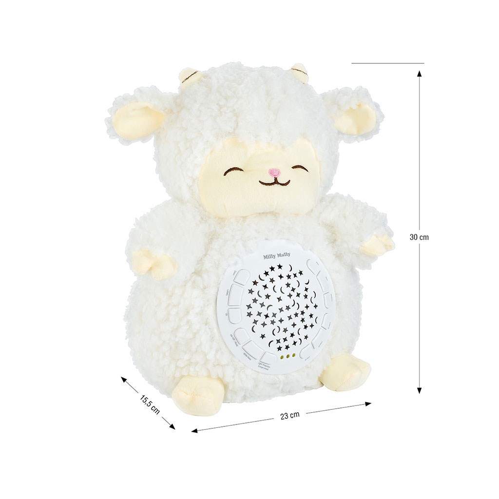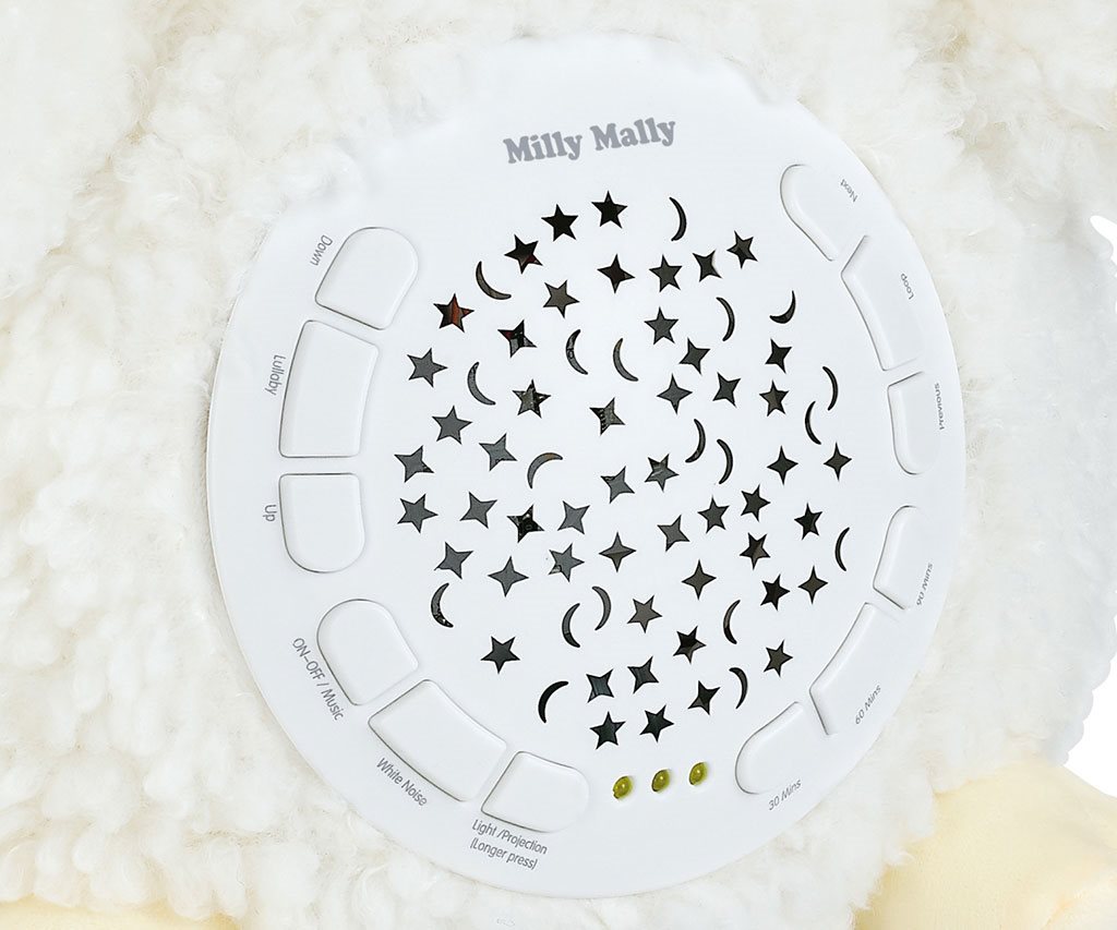 Vaš malček se bo ob pogledu na prijetno plišasto igračo počutil varnega in udobnega, sproščujoče melodije in zvoki pa mu bodo pomagali, da se umiri in zaspi.