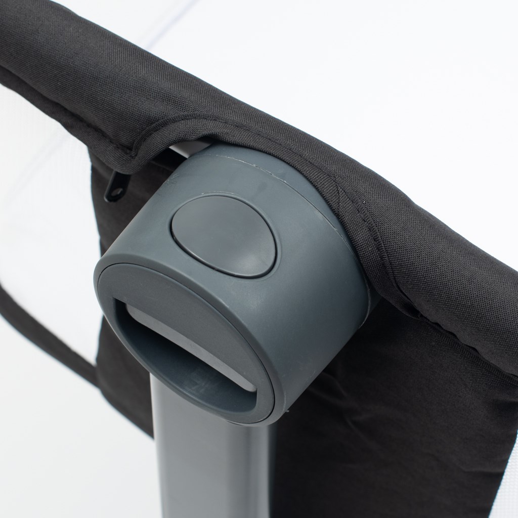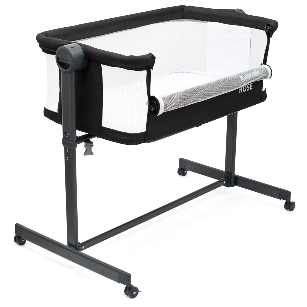 Posteljica je opremljena s tihimi kolesi z zavoro, ki omogočajo enostavno premikanje, medtem ko montaža brez orodja zagotavlja hitro in preprosto sestavljanje. Udobna vzmetnica za posteljico je priložena. Posteljica Rose ima trden in varen jeklen okvir. Poliester 300D, iz katerega je posteljica izdelana, je odporen in lahek.