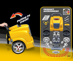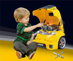 Igrača vsebuje svetlobne in zvočne efekte, ki prinašajo vznemirjenje in realizem v igralno izkušnjo. Z orodjem in premičnimi deli lahko otroci popravljajo avtomobile, menjajo pnevmatike, zategujejo vijake in se učijo osnov mehanike skozi akcijo. Razvija ročne spretnosti in logično razmišljanje ter spodbuja učenje skozi igro.