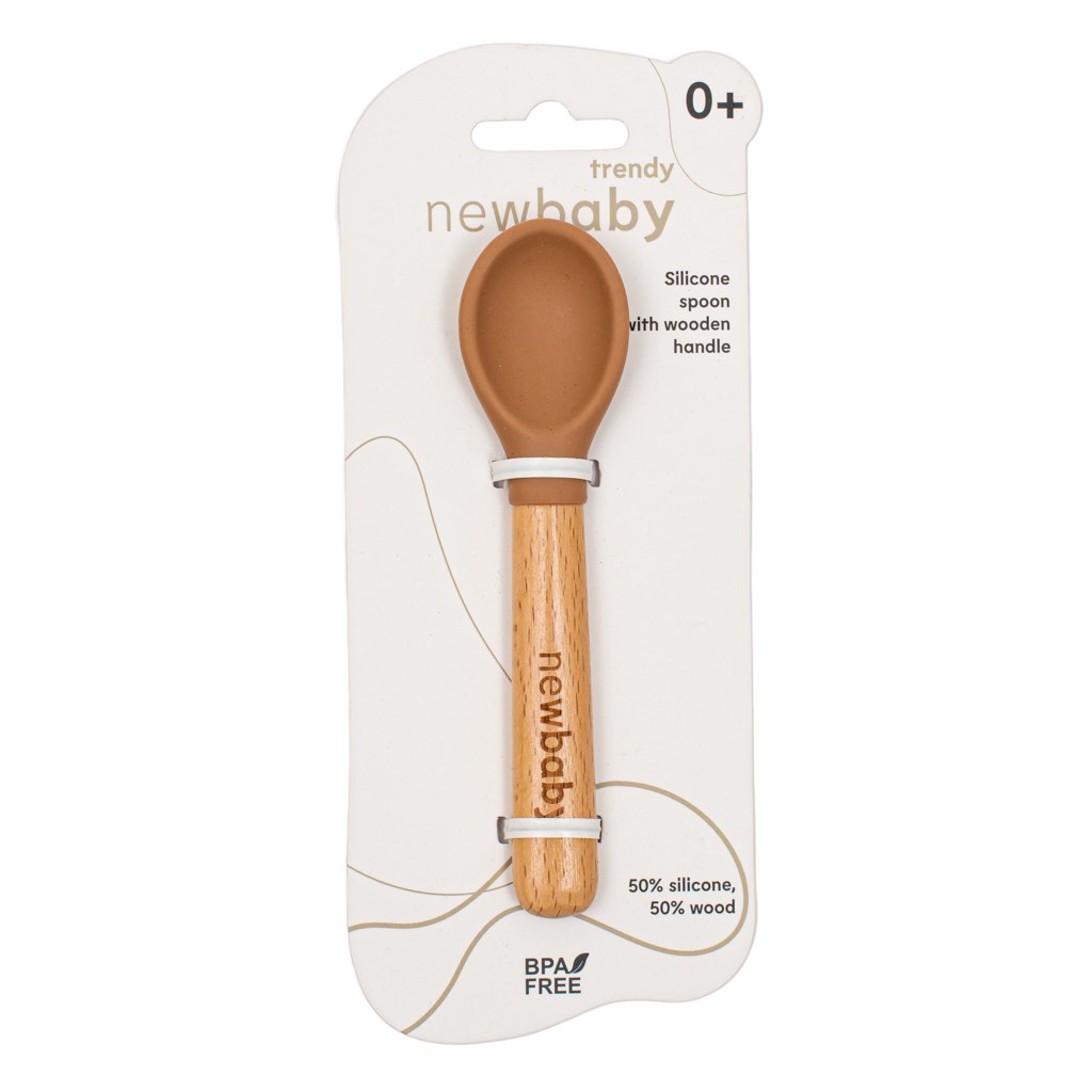 Otroška žlica iz serije New Baby Trendy združuje sodoben dizajn s praktičnostjo. Kombinacija lesenega ročaja z elegantnim graviranjem logotipa blagovne znamke in najkvalitetnejšega silikona brez BPA zagotavlja varnost in udobje pri hranjenju vašega dojenčka.