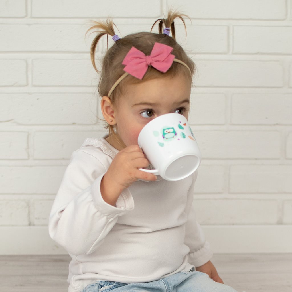 Otroška skodelica z ročajem Akuku. Skodelica je izdelana iz kakovostnega materiala, ima veselo barvo in čudovito sliko. Ne vsebuje BPA. Volumen 250 ml. Namenjena je otrokom od 12 mesecev dalje. Primerna je na primer za vrtec.