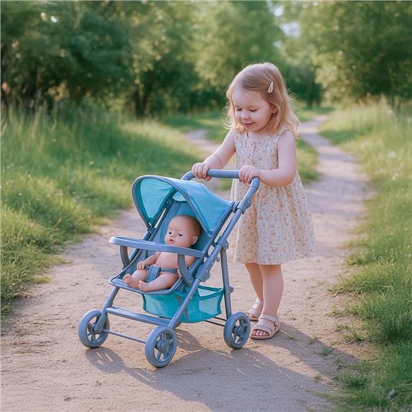 Ta ljubek športni voziček je idealna igrača, ki vsaki deklici omogoča, da se počuti kot prava mamica, ki skrbi za svojo ljubljeno punčko.