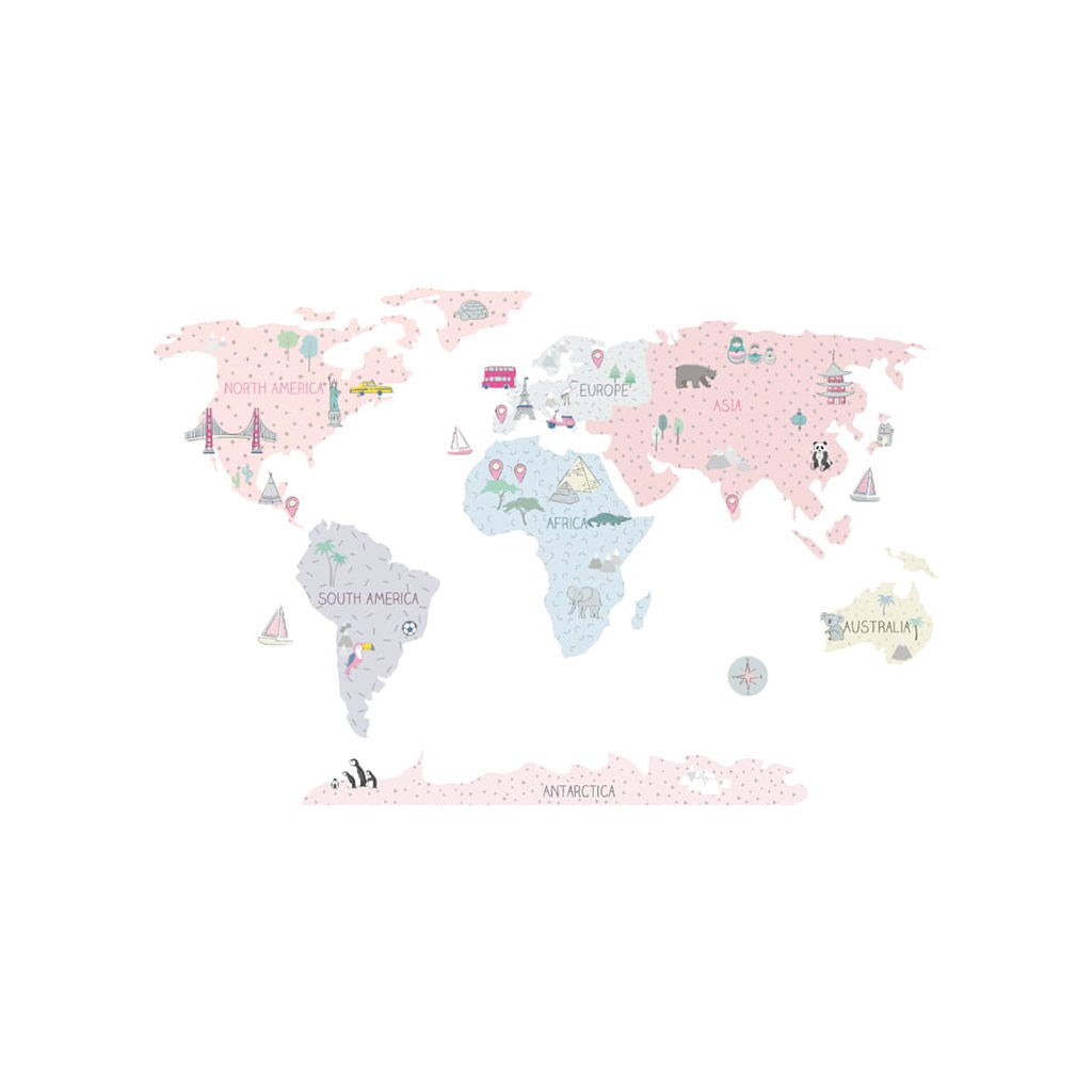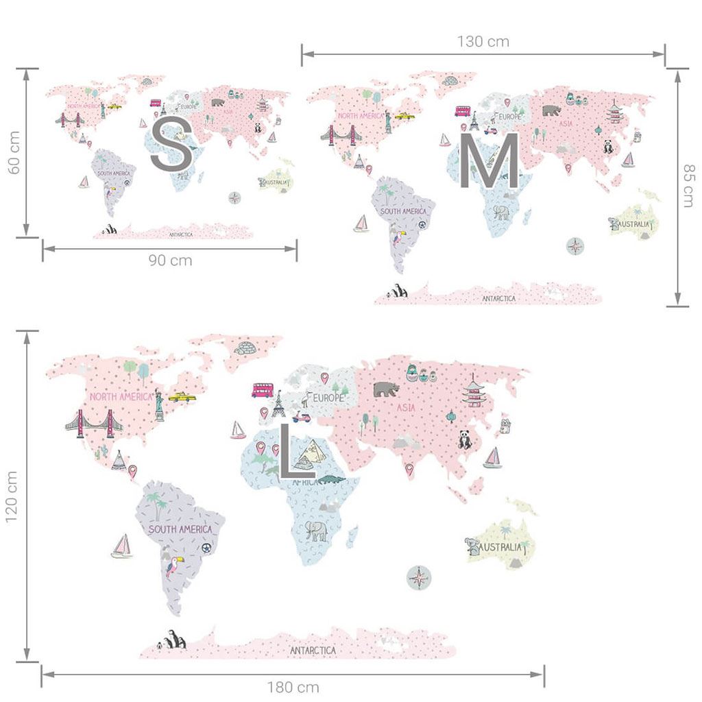 Lepa nalepka za steno Mapa M. Roza svetovna mapa je izdelek najvišje kakovosti, narejen z maksimalno skrbnostjo in pozornostjo do detajlov, ohranjen v umirjenih skandinavskih barvah, ki se popolnoma prilegajo prostoru otroka. Mape niso le edinstvena dekoracija, temveč tudi senzacionalen način učenja skozi igro. Otroci spoznavajo celine, oceane in svetovne strani, pa tudi znamenitosti in zanimivosti določenega območja ali države. Vsak element mape je skrbno izrezan po obrisu in nalepjen ločeno, kar olajša aplikacijo, še posebej v primeru velikih prostorov. Velikost nalepke se meri po njeni aplikaciji na steno, pri čemer so celine med seboj v ustrezni razdalji. Nalepka je zaščitena s posebnim mat laminatom, ki jo ščiti pred praskami pri vsakodnevni uporabi in hkrati olajša lepljenje – folija je debejša in lažje se prenese na steno. Če iščete popoln način, kako osvežiti otroško sobico, so naše nalepke na steno prava izbira. Naročite jih še danes in razveselite svoje otroka.