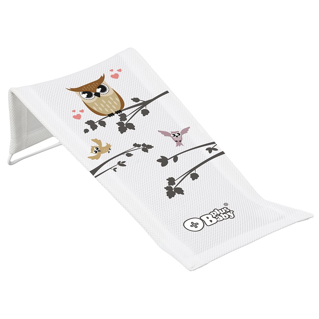Tkaninsko ležišče za kopel z motivom sove. Moderni dizajn, kakovostna obdelava, enostavno vzdrževanje, vse to ležišče ponuja. Je zelo praktičen pomočnik pri oskrbi dojenčka. Olajša varno kopanje novorojenčka in zahvaljujoč anatomski obliki pomaga pri zadrževanju dojenčka v vodi. Dojenček je na ležišču sproščen in je kopanje zanj pravo veselje. Dojenčka položite na mehko ležišče, tako imate obe roki proste za udobno umivanje. Material: jekleni okvir, tekstilna prevleka. Na okvirju je napeta tekstilna prevleka, ki se jo lahko enostavno sname in opere v pralnem stroju. Dimenzije: dolžina x širina približno 42x20 cm.
