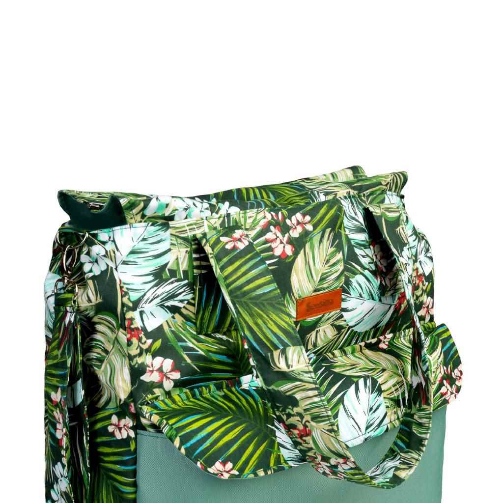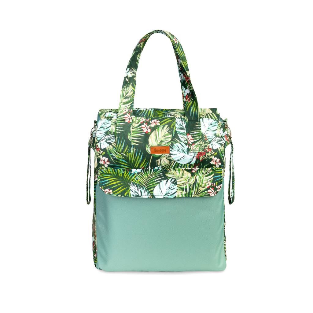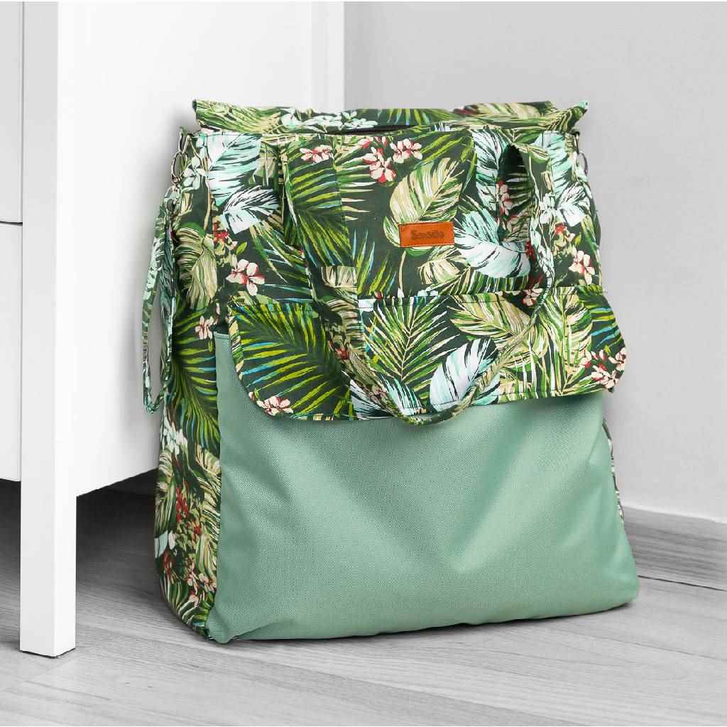 Velika, prostorna torba za mame Sensillo, idealna za sprehode, nakupe ali v bolnišnico. Zaradi svoje velikosti lahko shrani vse potrebno dodatno opremo. Sprednji žep, zaprt z diskretnim magnetom, sprejme vse stvari, ki morajo biti pri roki. Notranjost torbe je iz poliester podloge. Nepogrešljiv element torbe so trpežni barvni ročaji, ki omogočajo obešanje na voziček.