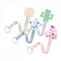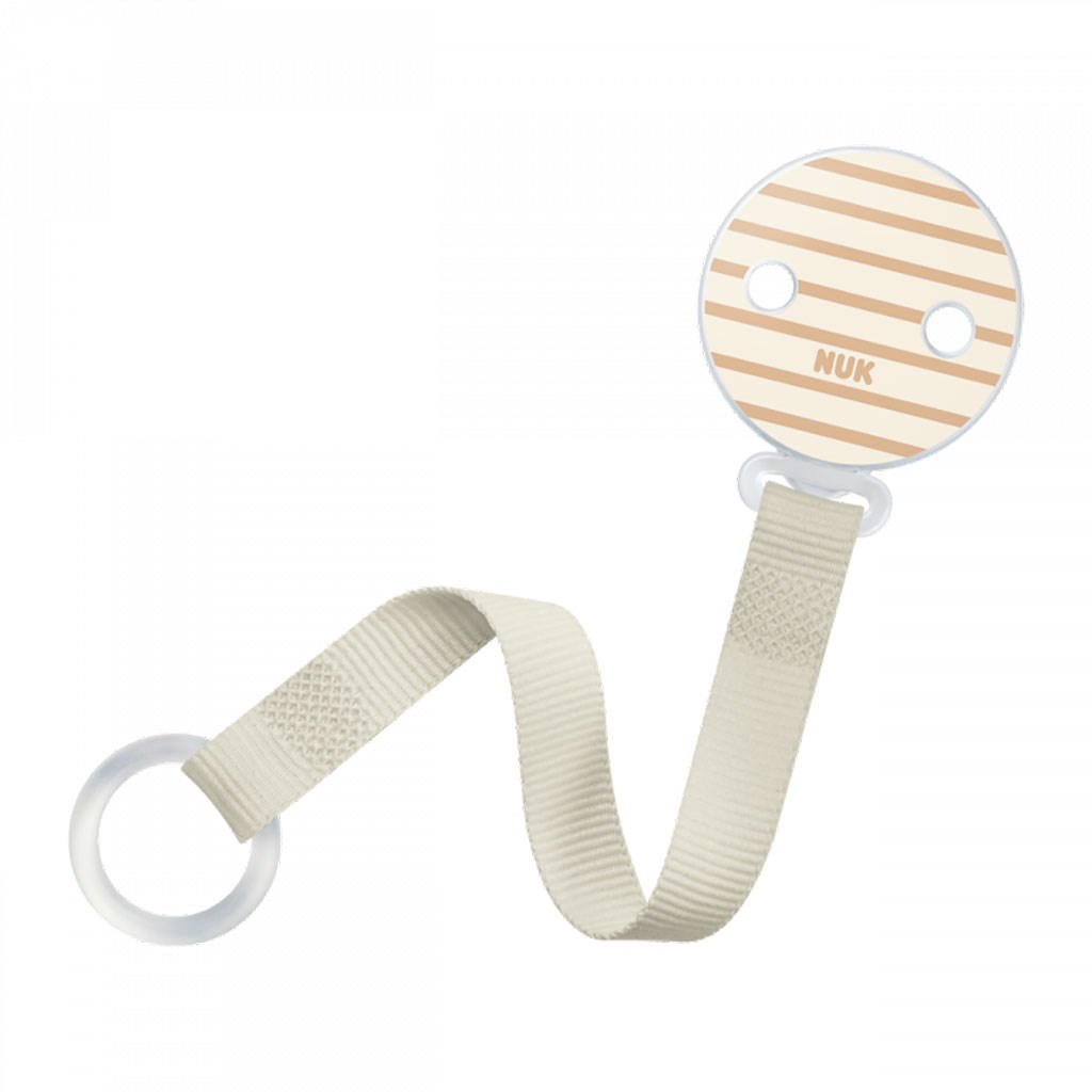 Vesela, barvna trakica za cucljanje NUK z fleksibilnim obročkom je odlična pomoč za dojenčke in starše. Nepogrešljiva še posebej med potovanji in sprehodi. Zaradi sponke cucljanje ne pade na tla, ne umaže se in se ne izgubi. Ima enostavno uporabo in je izdelana tako, da jo lahko pripnemo na otroška oblačila. Pisane barve in veseli vzorci pritegnejo otroško pozornost. Namenjena otrokom od prvih dni življenja. Trakica je primerna tudi za cucljanje brez obročka zahvaljujoč raztegljivemu silikonskemu obročku. Sistem sponke nima ostrih robov, kar omogoča odpiranje in zapiranje z eno roko.