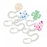 Vesel, barvit zobek za cuclanje NUK je odličen pomočnik za dojenčke in starše. Nepogrešljiv predvsem med potovanji in sprehodi. Zaradi sponke cucljanje ne pade na tla, se ne umaže in se ne izgubi. Ima enostavno uporabo in je zasnovan tako, da ga lahko pripnemo na otroška oblačila. Žive barve in veseli vzorci pritegnejo pozornost otroka. Namenjen otrokom od prvih dni življenja. Primeren za cucljanje s obročem.