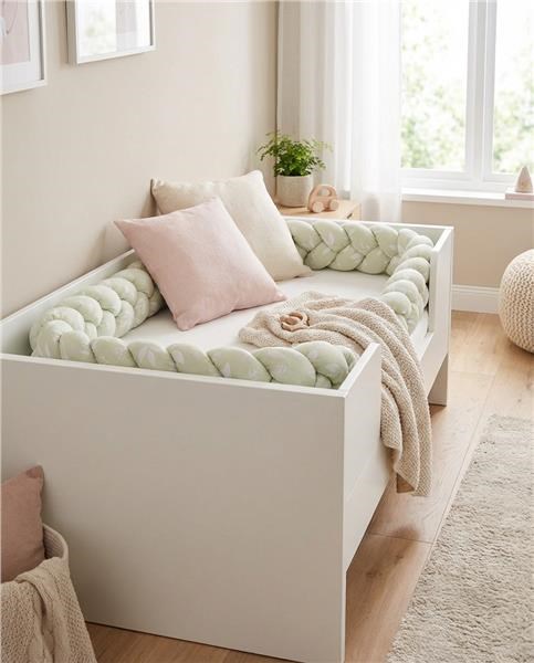 Mehak in praktičen pleten COP češke blagovne znamke New Baby je moderna alternativa tradicionalnemu ali blazinskemu varovalnemu elementu, ki ni primeren samo za otroške posteljice. Vsi trije prameni so izdelani iz zelo kvalitetnega bombažnega materiala in antialergijske poliestrske polnjenja ter so ročno spleteni v cop. Uporabite ga lahko v posteljici, gugalniku, kjer ščiti otroka pred trdimi prečkami posteljice in izolira od mrzle stene. V vaši postelji bo služil kot gnezdo, kjer lahko dojenčka enostavno ovijete za še večje občutek varnosti in udobja. Varovalnik se prilagodi vsaki posteljici in z uporabo treh priloženih trakov ga enostavno pritrdite. Starejše otroke ga lahko izkoristijo za zabavo ali kot izvirno dekoracijo otroške sobe.