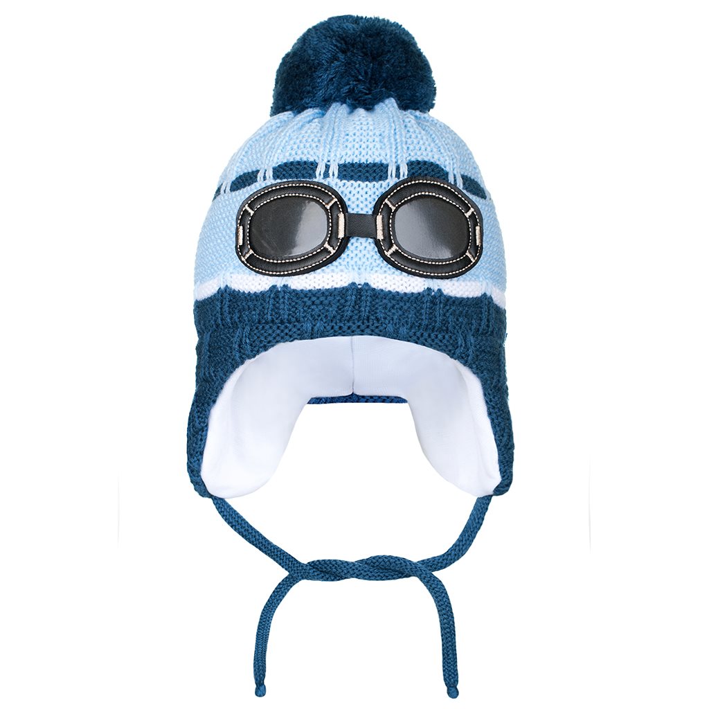 Čudovita zimska pletena kapica New Baby. Kapico krasi lep črtež s očali. Ima zavezne trakce, bombažno podlogo, isosoft polnilo in ljubko pompon. Isosoft so posebej izbrana vlakna, ki zagotavljajo odlično zaščito pred mrazom in idealno toplotno udobje. Sestava 100% bombaž. Kapica je primerna za zimske dni. Idealna za majhne in večje otroke. Kapica je oblikovana tako, da pokriva ušesa. Obseg okrog glave 44-48 cm.